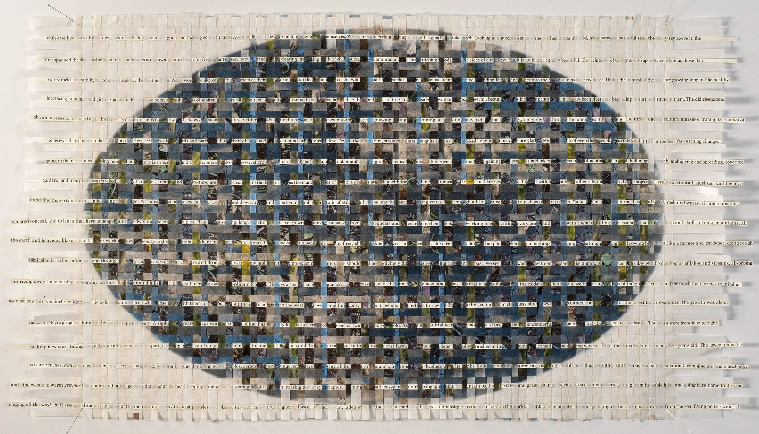 My work has evolved from weaving fabric on floor looms, to Eva Hesse-inspired mixed-media, to welding life-size steel and paper pulp sculptures, to the physical manipulation of photo-based inkjet prints on paper. Inspiration for my work has always been rooted in the tactile, the language of materials and process, and finding my way to something compelling through trial, error, and investigation. Combining photo-based inkjet prints, text from naturalists and philosophers, and traditional weaving drafts has resulted in modes of thinking, responding, and assembling that are new and familiar in terms of chance juxtapositions and relationships between pattern, structure, text, and image.